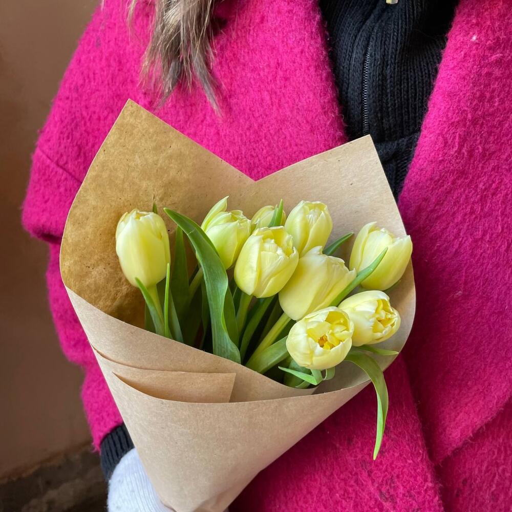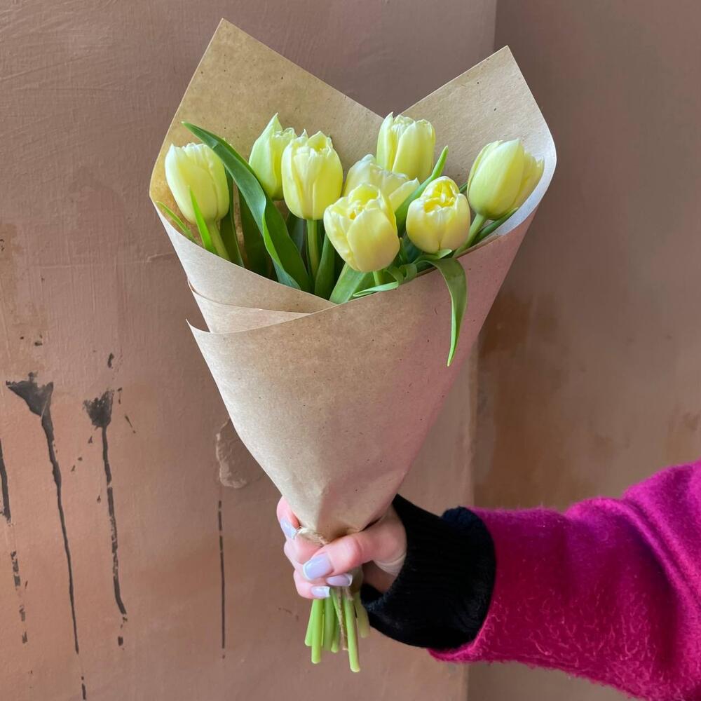 9 лимонных пионовидных тюльпанов в Сасово